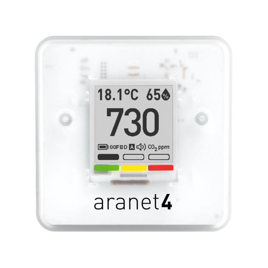 The Aranet4 Pro simply monitors this CO2 level giving you a clear indication of the quality of Air that you breathe. It continually records this information to its integral memory. At any time, you can download this information (up to 30 days) to your smart phone/tablet using the Aranet4 App and then view a selected time frame of up to 90 days. But its big advantage is that this data can also be collected remotely over long distances via its radio link to a centrally located base station. From where all locations can be monitored and data stored for future reference.