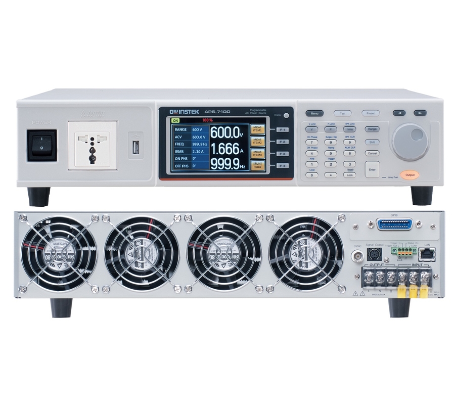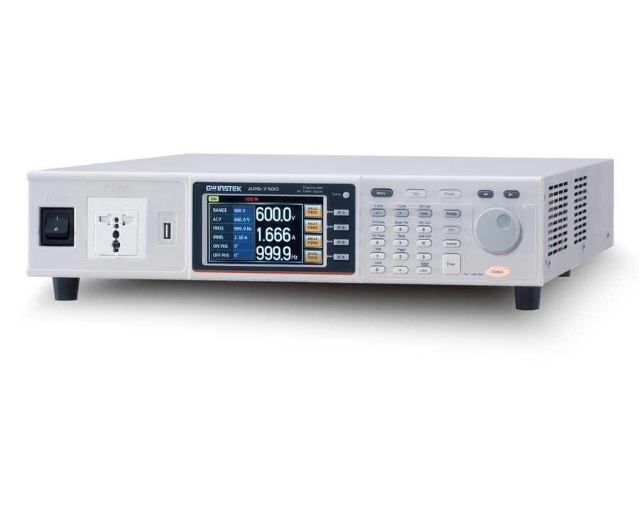 The GW Instek APS-7100 AC Power Source offer two standard AC voltage ranges of 0…155Vrms & 0…310Vrms with an optional software upgrade range of 0…600Vrms. The output frequency range is 45…500Hz. This economical designed AC Power Source offers a cost-effective reliable solution for test & development applications in your Test Laboratory, Research & Development, Production or Training Facility.