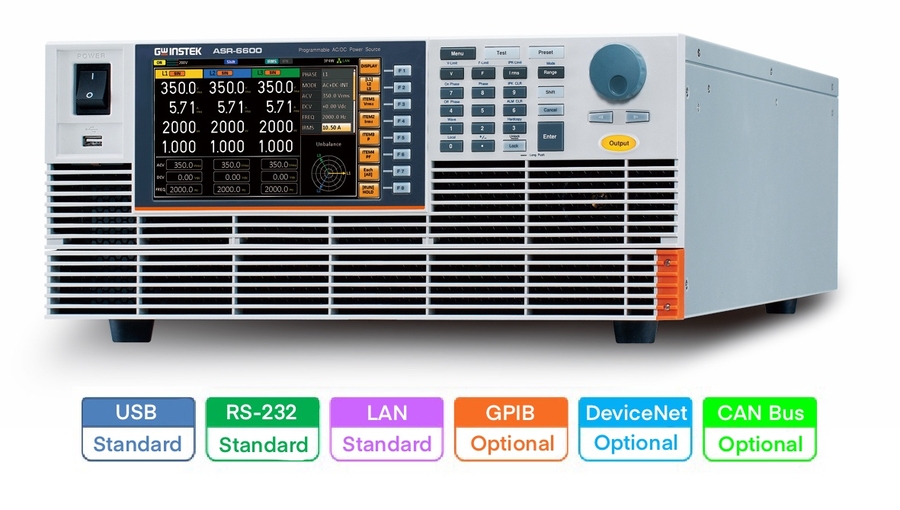 The ASR-6000 series of Programmable AC/DC Power Source is the first stand-alone unit from GW Instek that supports AC single & three phase input & output functionality. The series employs third generation semiconductor silicon carbide (SiC) technology that’s enabled GW Instek to create this compact high-power density and high-performance AC/DC power source. The GW Instek ASR-6600 Programmable AC/DC Power Source supports AC Single & Three Phase input and output requirements. Its main function of this high-power AC source is the performance testing of both single-phase and three-phase AC products and their ability to perform under diverse power variations from balanced and un-balanced supplies, phase failure and power loss, plus a full range of up to 253 adjustable arbitrary single and three phase waveform outputs.